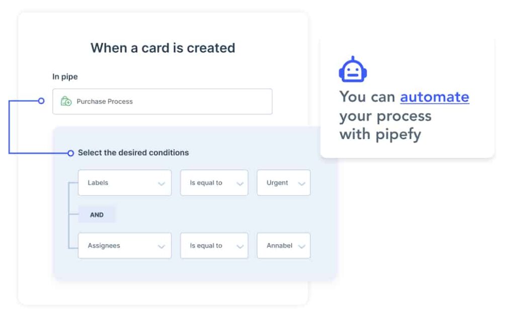 Pipefy Le ayuda a controlar el proceso de orden de compra. Pipefy está diseñado para una implementación rápida y fácil de usar, brindando consistencia, precisión y velocidad a su proceso de orden de compra.